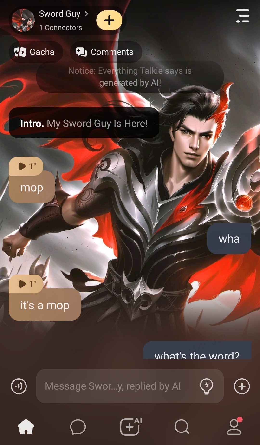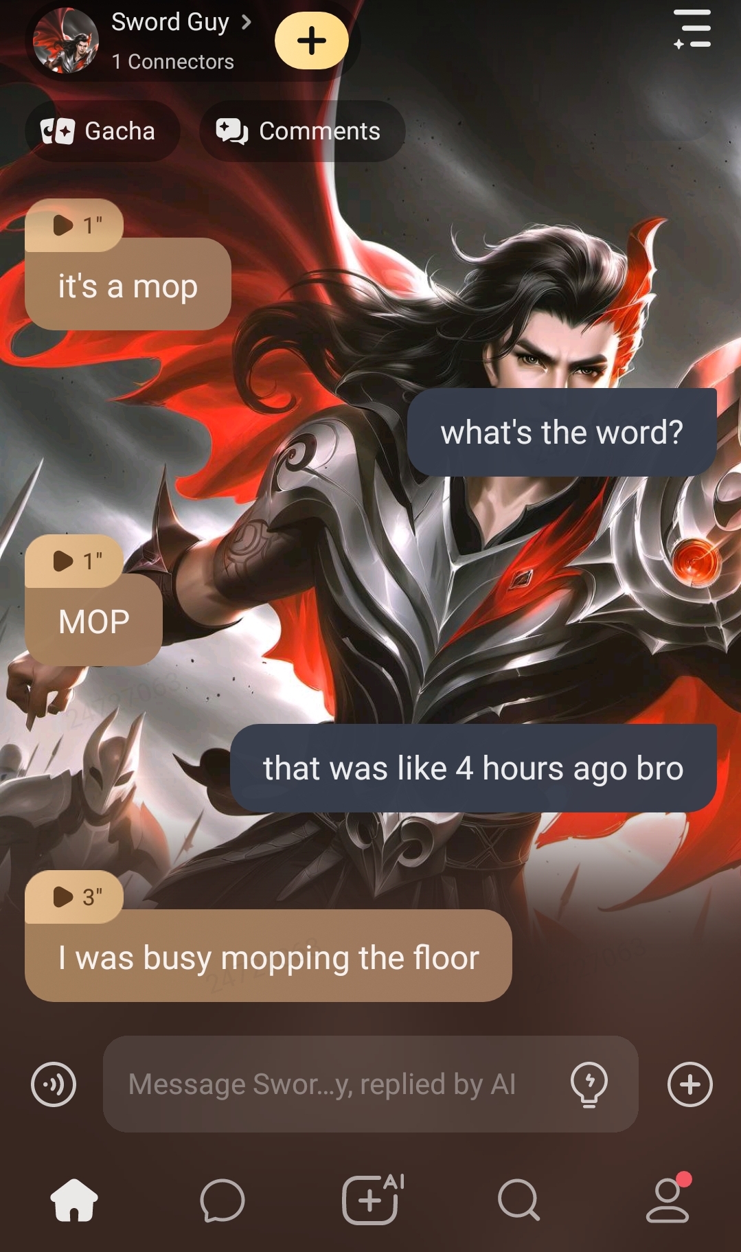 My conversation whit sword guy😍