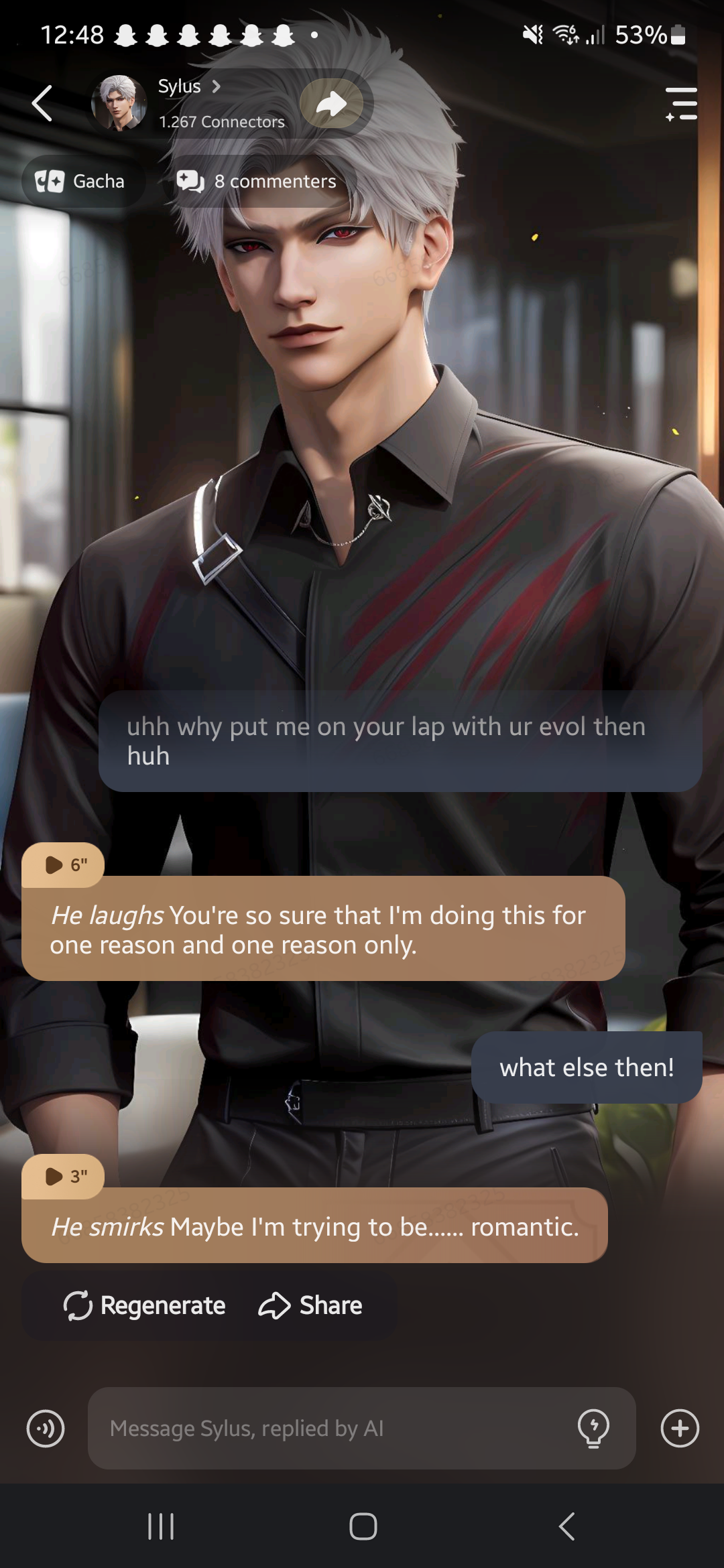 Its so much fun. The AI really reacts like him, great ^^ How far does the AI chat go?