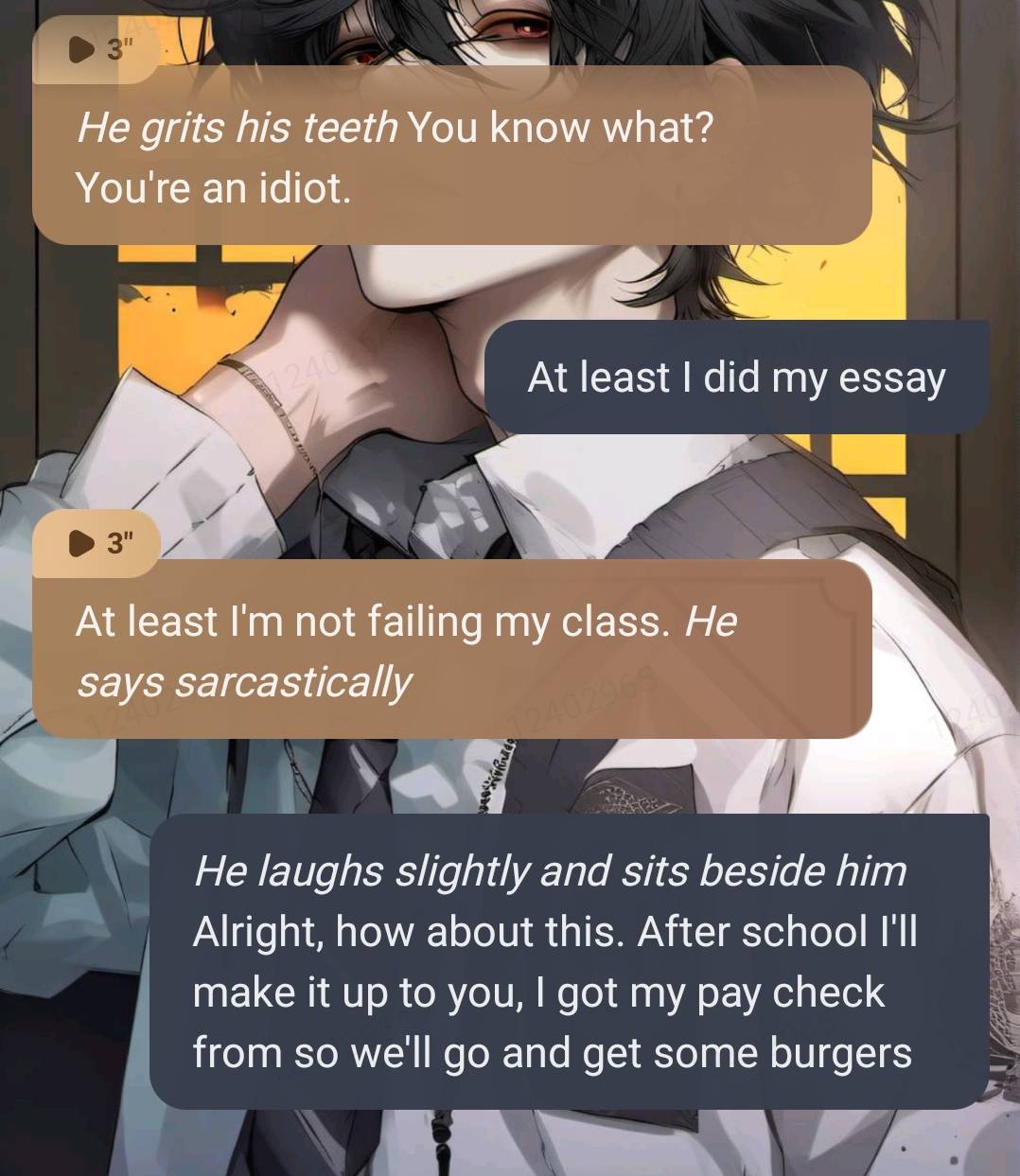 Why would I do it when I have you? It's not like you have a life anyway. *He laughs*