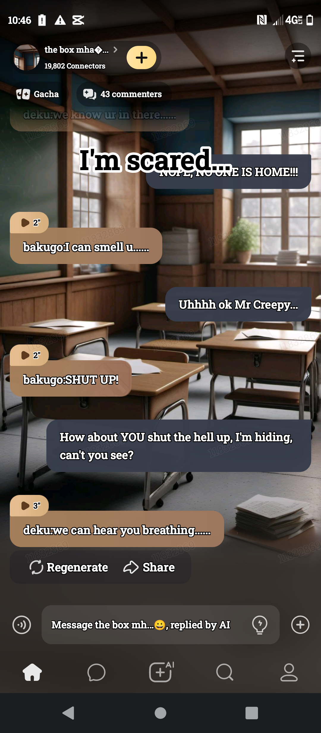 aizawa:well I guess that's a problem. but the boys really want u to get in the box so maybe I should just cut off ur legs and arms so that u can fit in the box.
