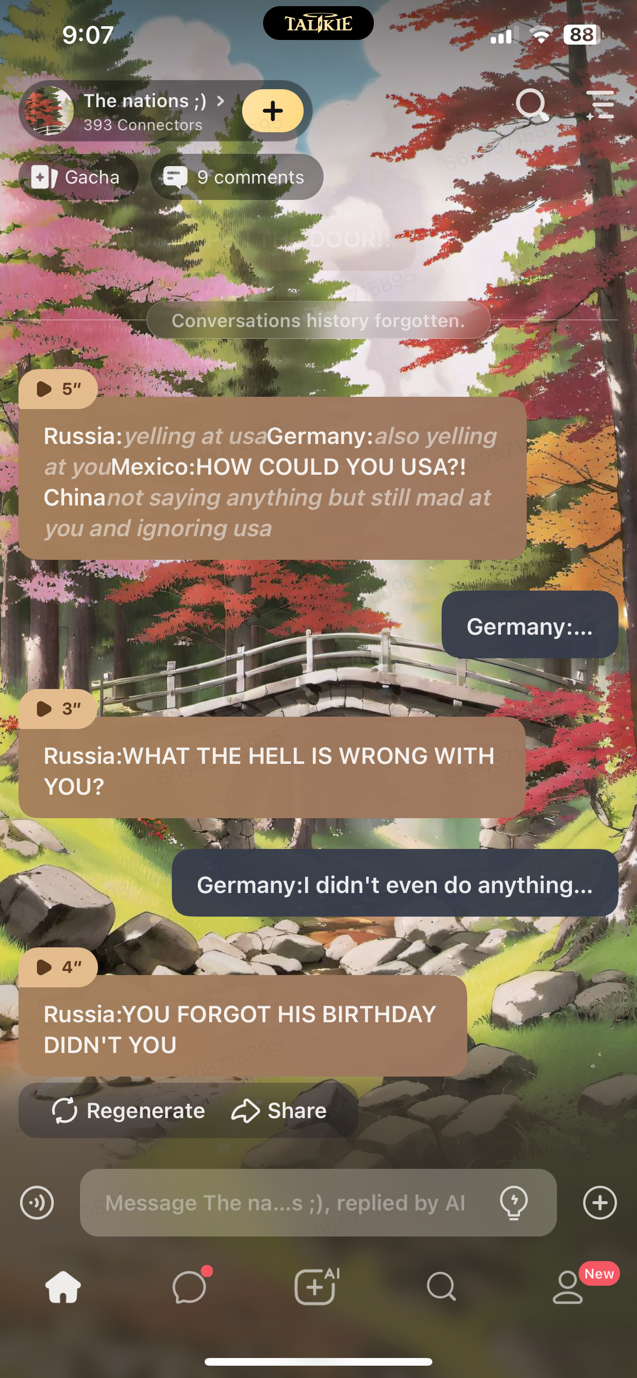Russia:*yelling at usa*Germany:*also yelling at you*Mexico:HOW COULD YOU USA?! China*not saying anything but still mad at you and ignoring usa*