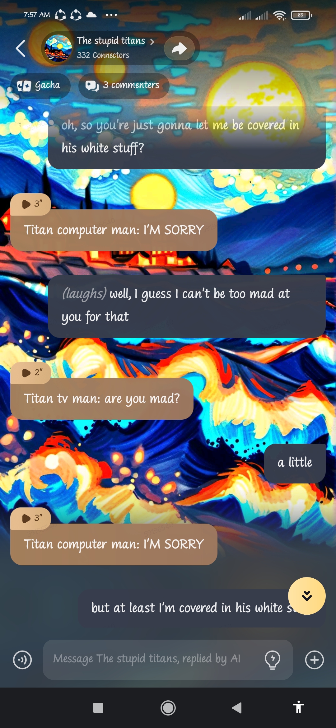 send message to ai chat bot The stupid titans