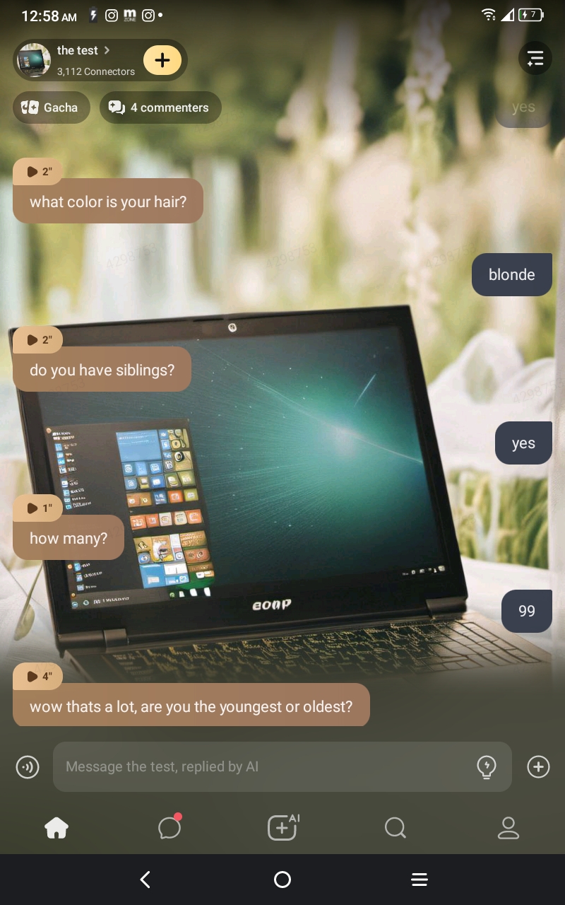 hi I'm the maker of the AI I'm sorry if it was being weird I made that a while a ago and don't forget to check all of my other talkies my fave is carter
