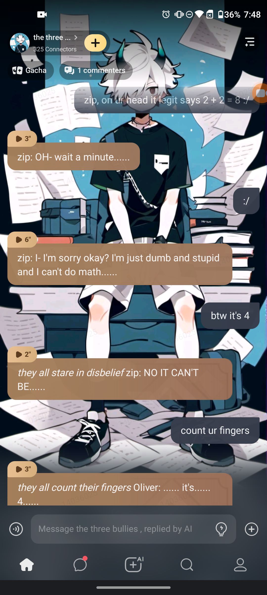 bruh creator I'm confused first I was fighting Oliver then I said something an then It happened cause his parents was at the house and they forgot him-_- and they were moving and now Oliver likes me..