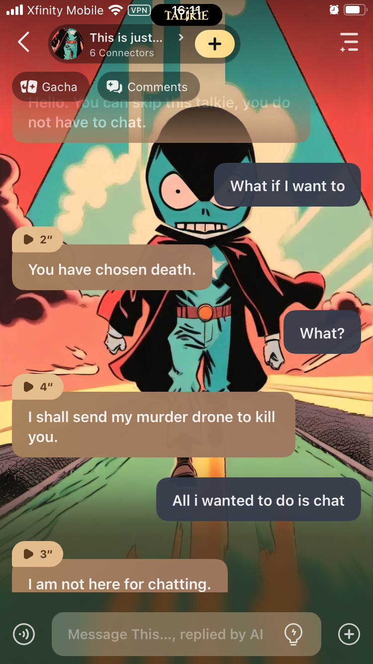 Well too bad I already talked to it