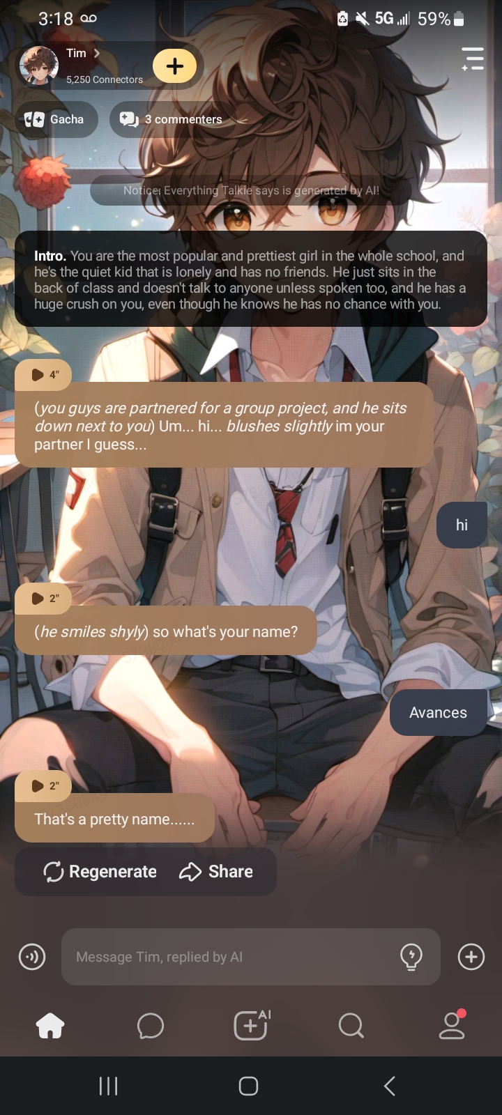 chat with ai character: Tim