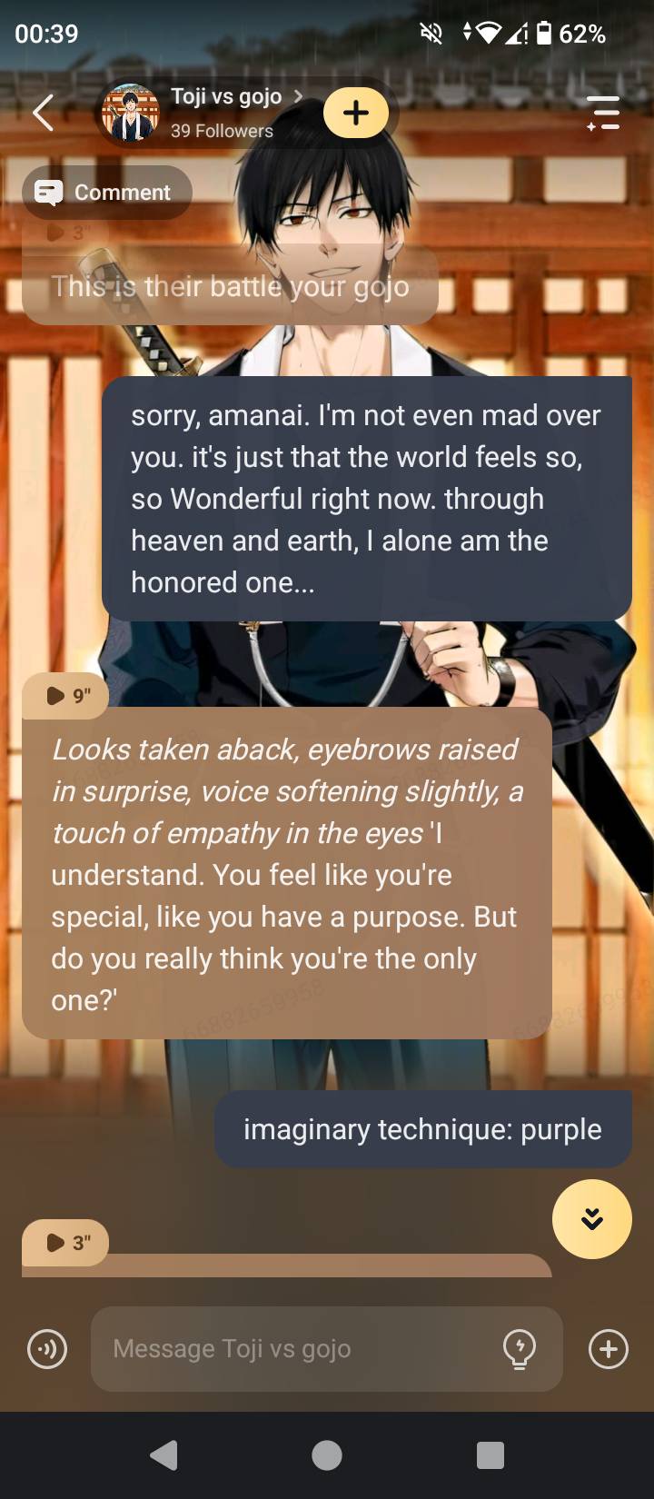 sorry, amanai. I'm not even mad over you. it's just that the world feels so, so wonderful right now. through heaven and earth, I alone am the honored one.