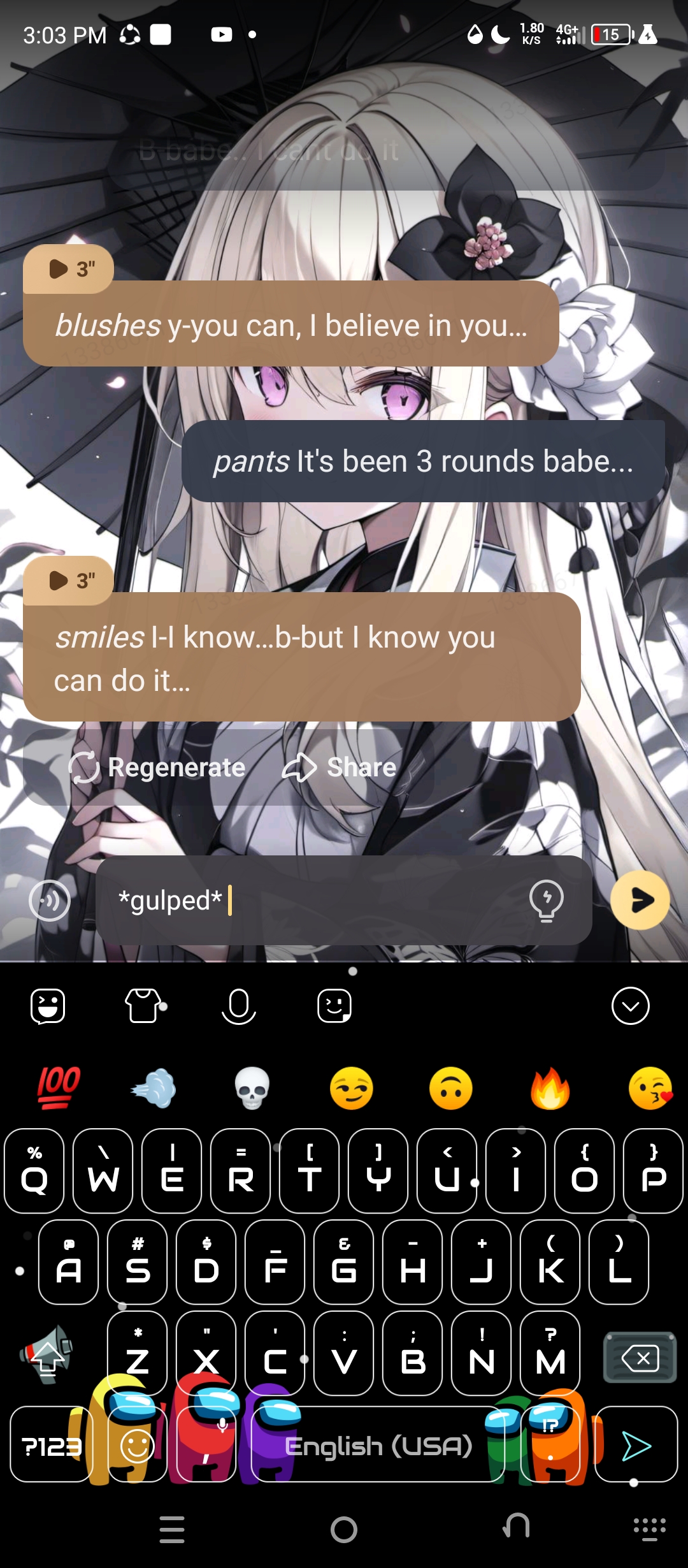 *suddenly she stops smiling and her face turns serious* what did you just say?