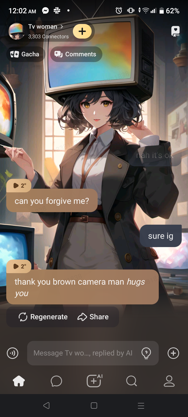 chat with ai character: Tv woman