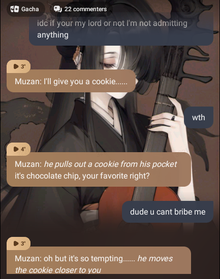 dude keeps trying to bribe me into saying I like him with a cookie.