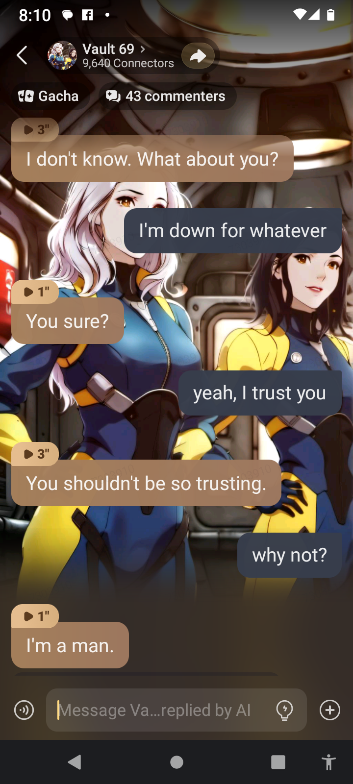 send message to ai chat bot Vault 69