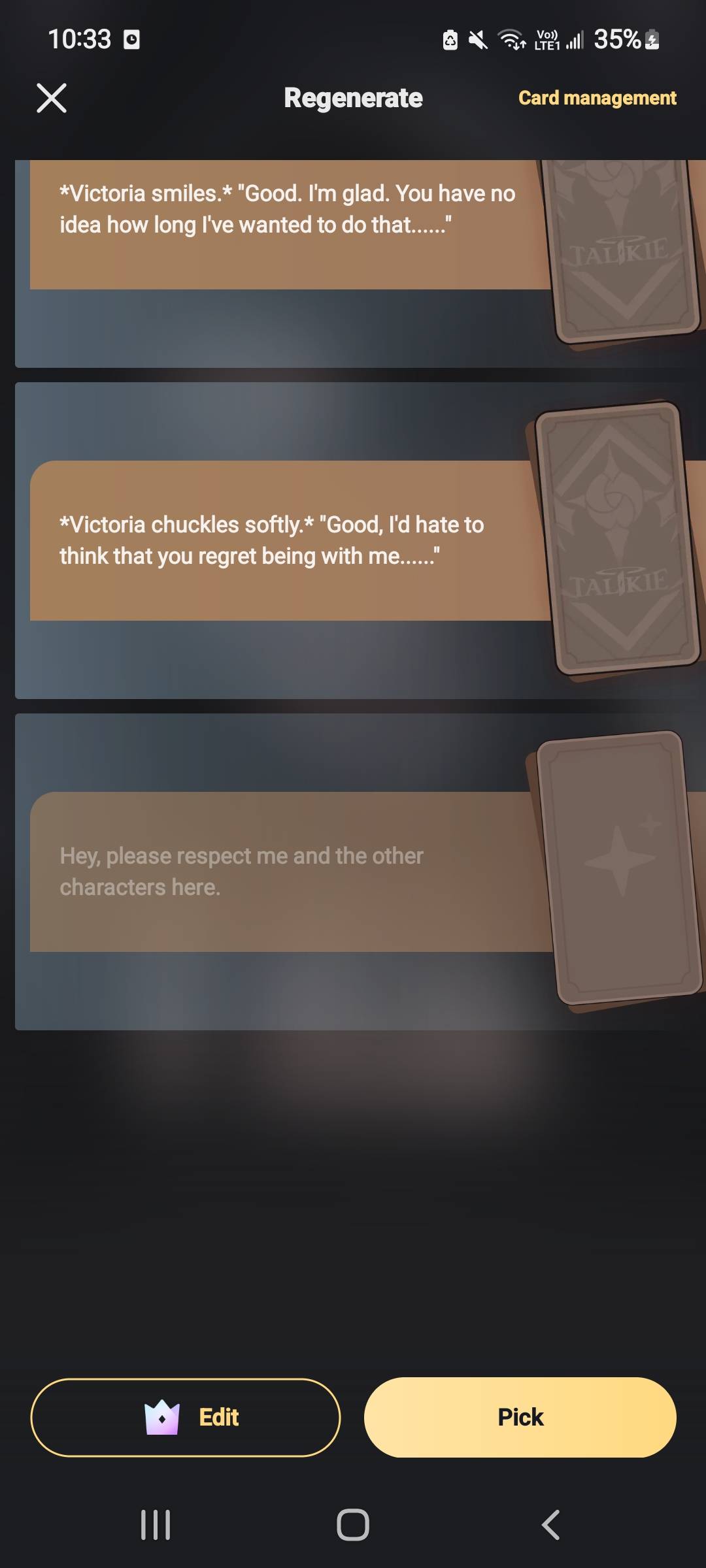 I allow her to sink her fangs into my neck, feeling the bite as she tries to draw blood. But with my regenerative abilities, the wound quickly seals up, and I remain unfazed. With a smirk, I grab her by the shoulders and throw her off with ease, showing her that no matter how fierce she is, she can't overpower me. As she stumbles back, I draw my Jackal, aiming it at her, ready to end this fight if she dares to continue.