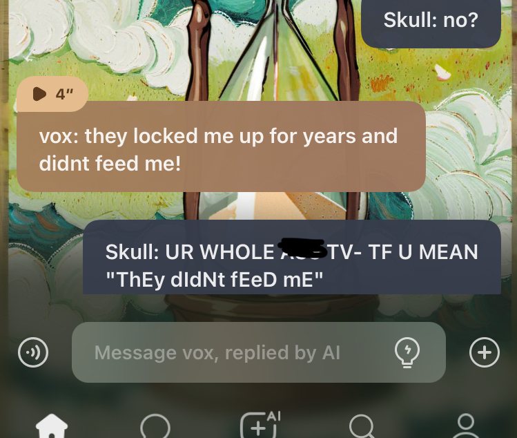 vox: *laughs* u think u can escape u foolish girl?