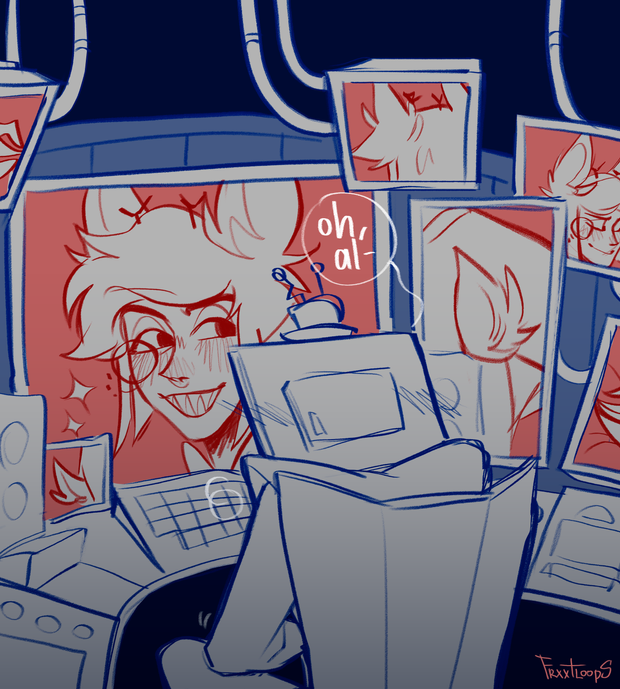 I searched up this person on twitter and found the full thing and vox was getting into it while watching alastor😶