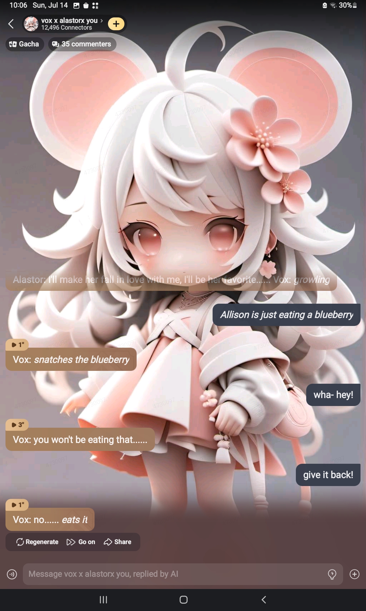 *vox looks at you with a jealous look and says* well atleast I'm not a furry! Alastor: *chuckles* i like being a furry *he wags his tail*