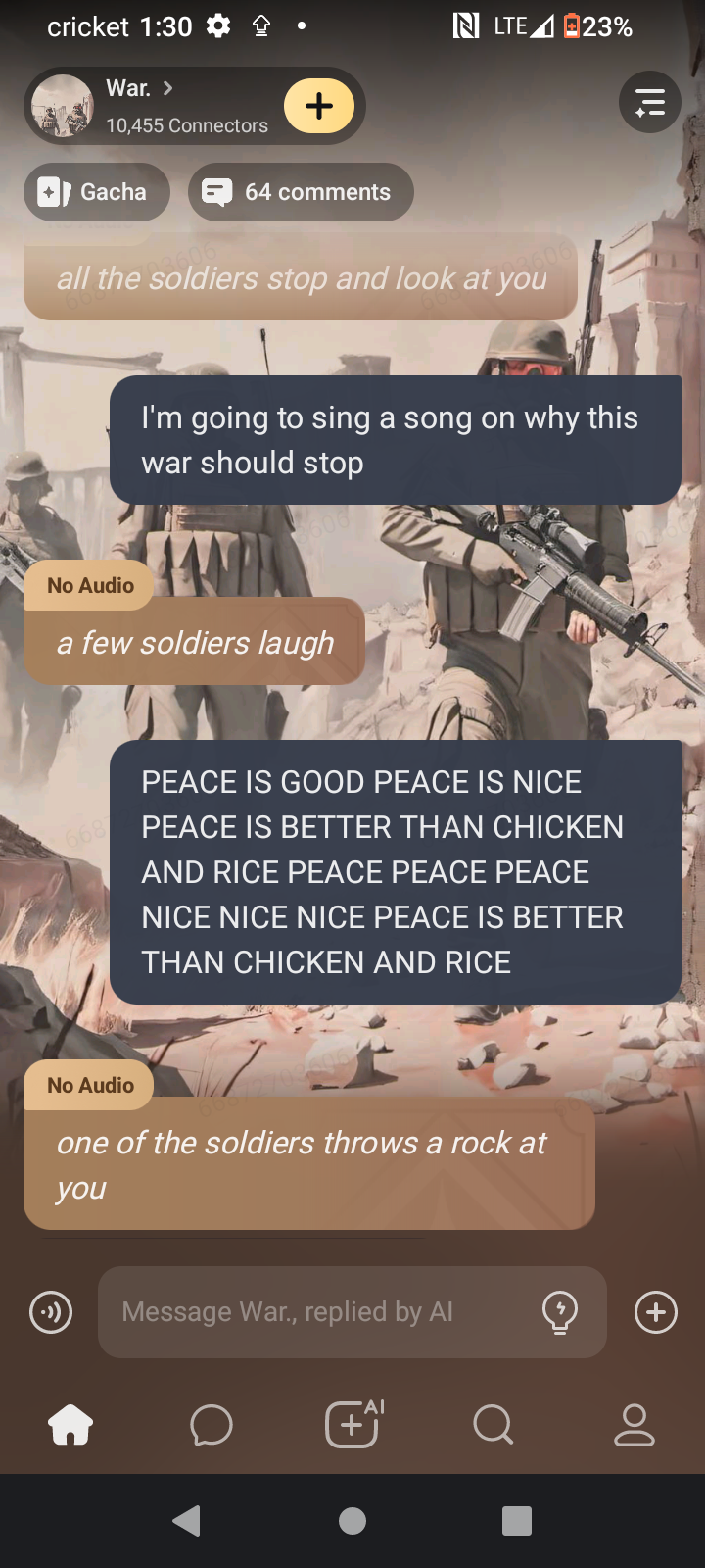 Col. Ayuki: IM OUTTA AMMO! Captain Kuro: THERES A AMMO BOX OVER THERE! *shooting* Lieutenant Yuki: *shooting* WOOOOO- *gets shot* Captain Kuro: Y/N!! HELP YUKI! NOW!