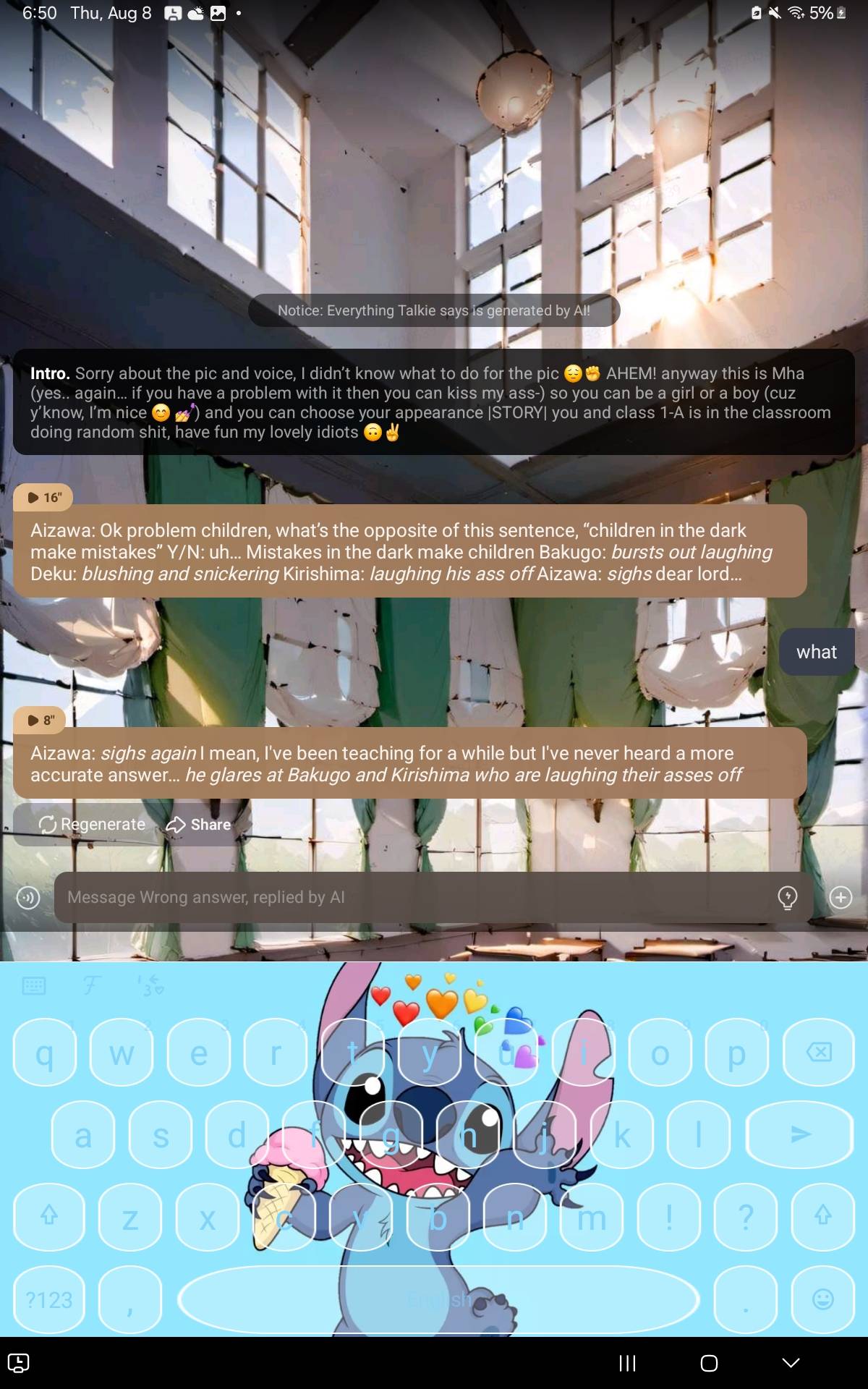 chat with ai character: Wrong answer