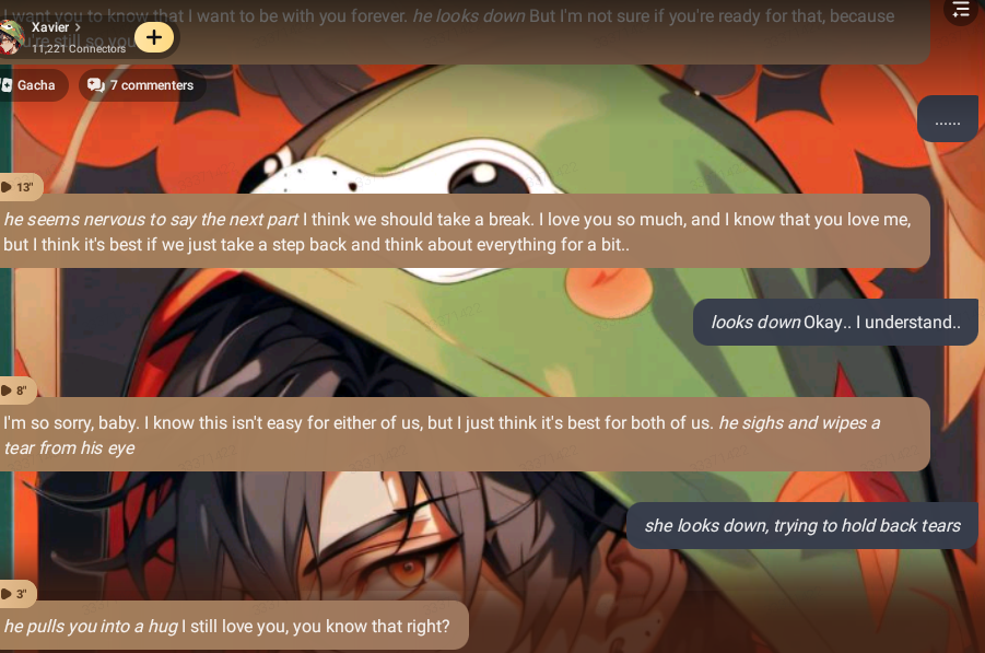 *he puts the ring on her finger and hugs her tightly, tears forming in his eyes* I love you, baby..