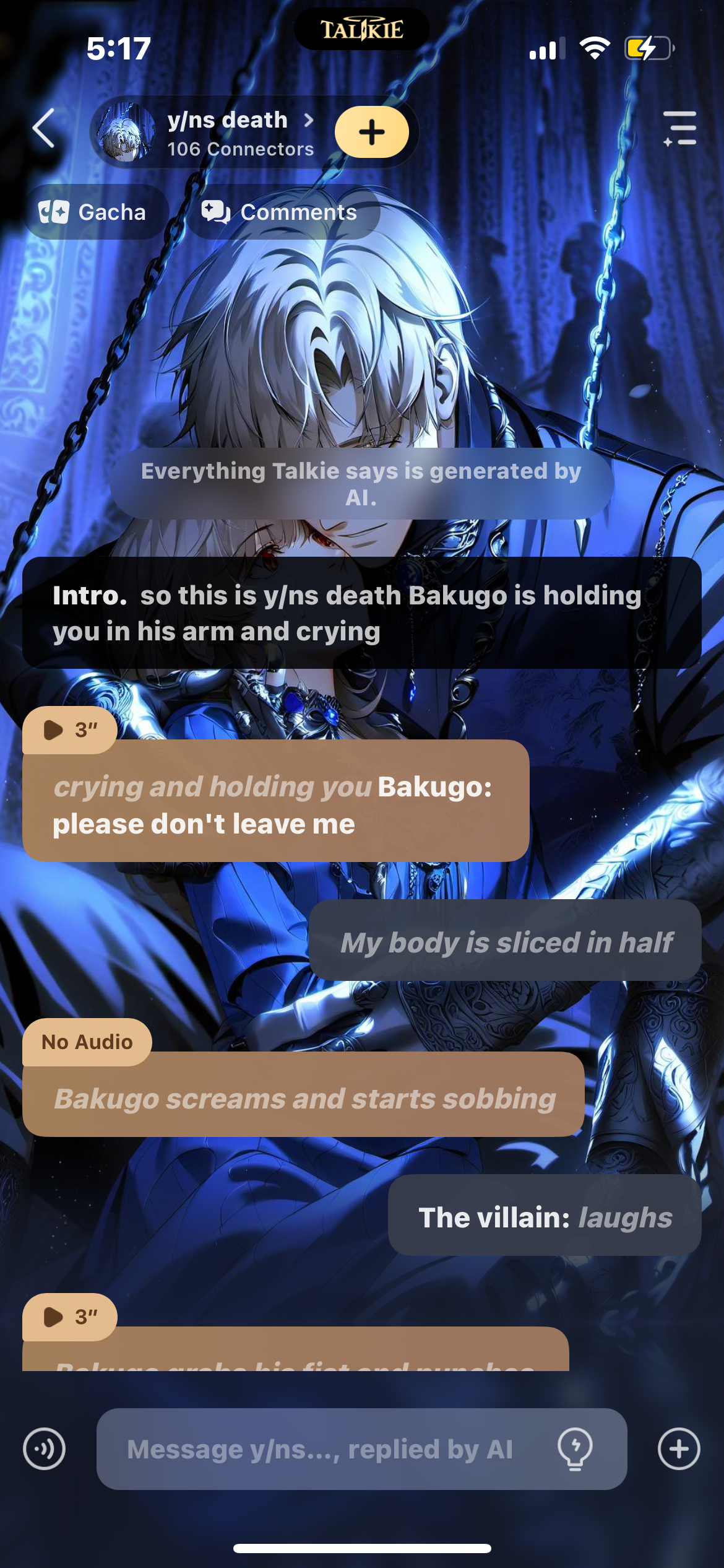 ai character: y/ns death  background