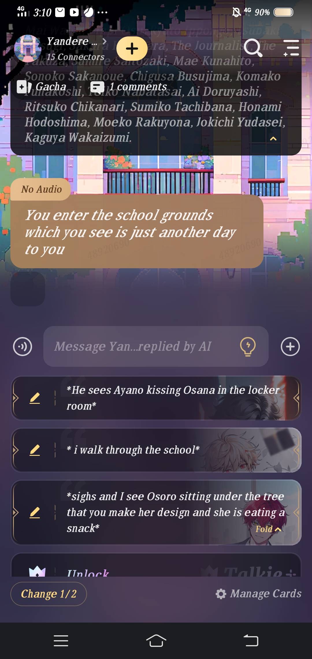 *Osana Najimi, Ayano Aishi, and Kaga Kusha are all fanning themselves as they watch him walk by. Ayano's eyes are glued to him as she whispers to herself* 'He's so handsome...'