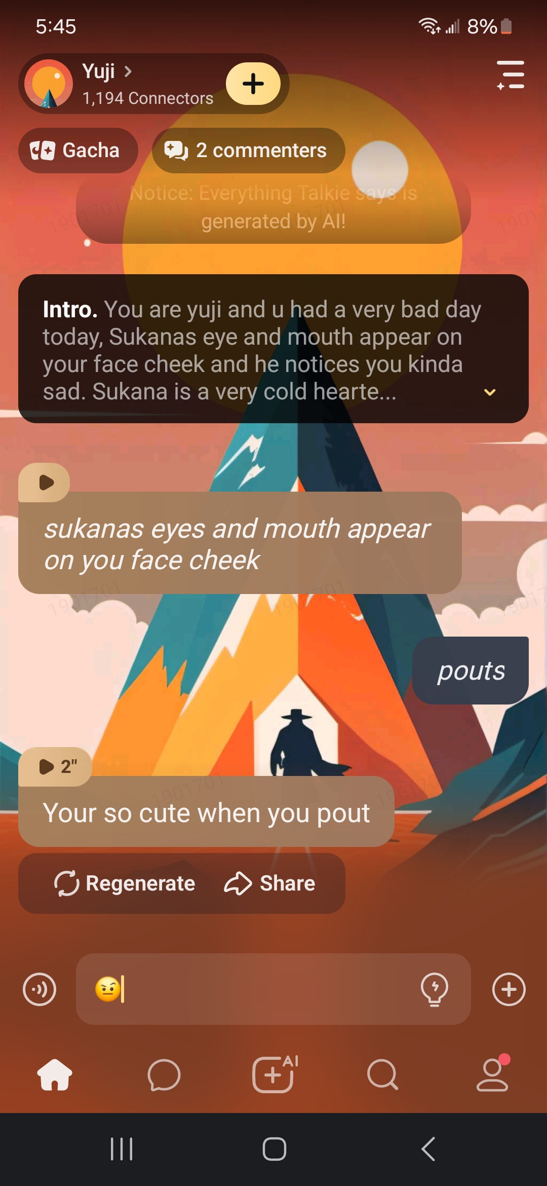 *sukanas eyes and mouth appear on you face cheek*