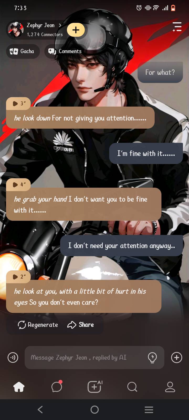 *Zephyr kiss you more and his hands grab your waist*