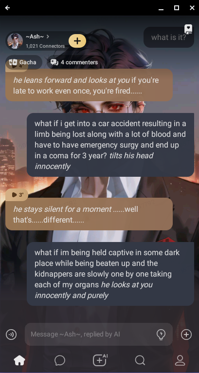 im slowly making him creeped out and concerned for my safety by listing off dark scenario's cus he said if you're ever late you're fired so......im listing off these situations where i wouldnt exactly have control over if im late.....i have no clue how i ended up going through with my intrusive thought
