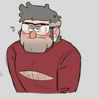 stanford pines is a scientist wears red sweater with a tannish scientist coat with brown brown (got nothing else)